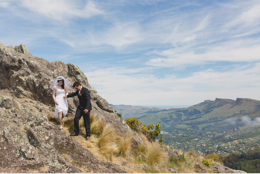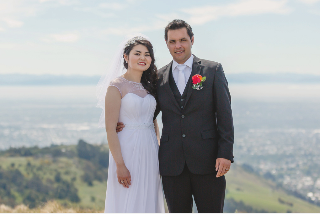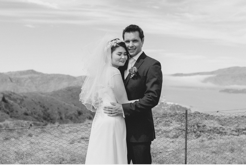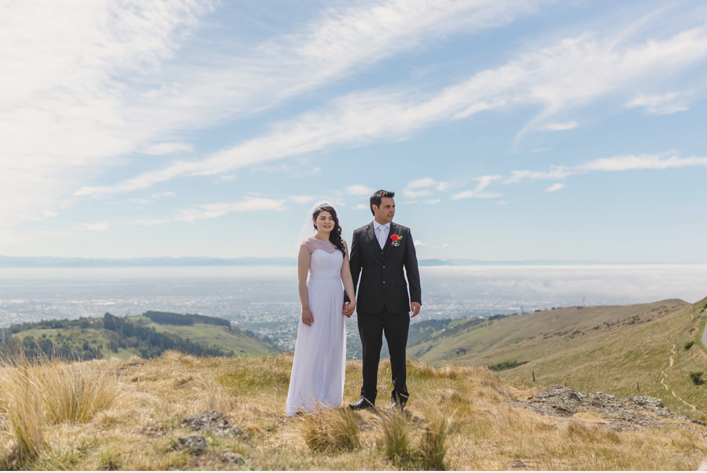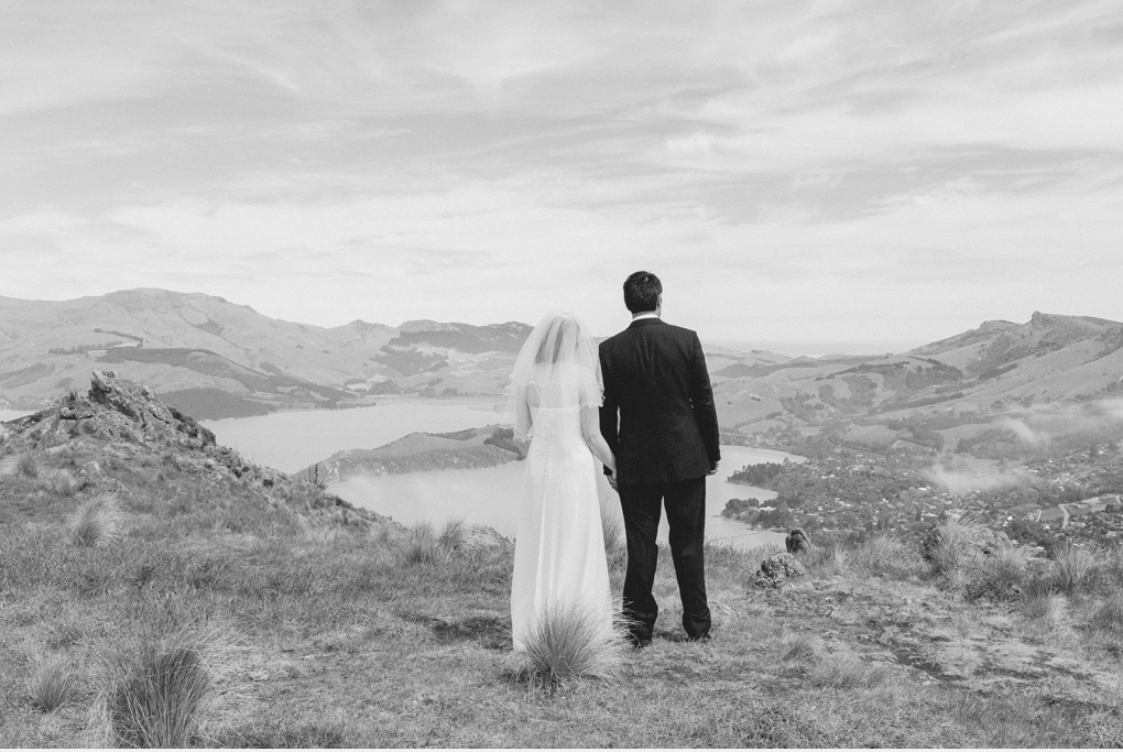 Ben and Yukiko were married at Cashmere Presbyterian Church on a sunny Tuesday afternoon. They chose to keep it all low key and it was pretty special to witness the meeting of two families this way. After their ceremony Ben, Yukiko and I headed up to a lookout point overlooking Lyttleton Harbour and Christchurch City. Low clouds rolling in over the city towards the end of our shoot made for a beautiful backdrop.