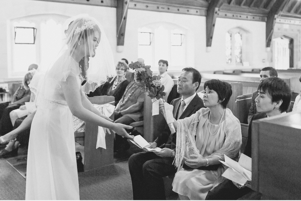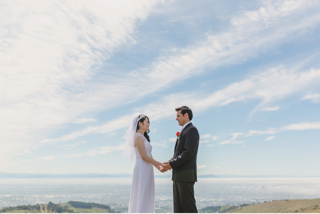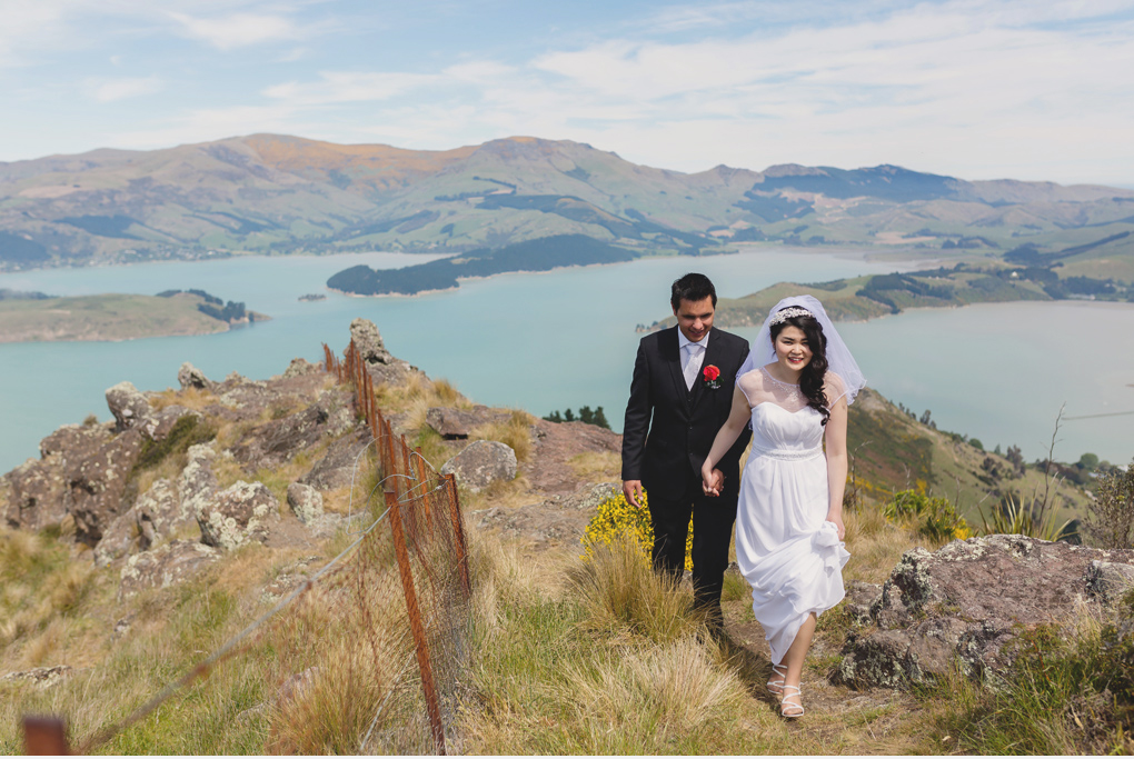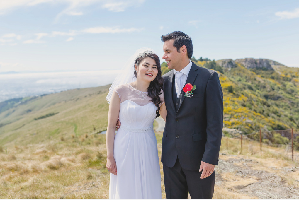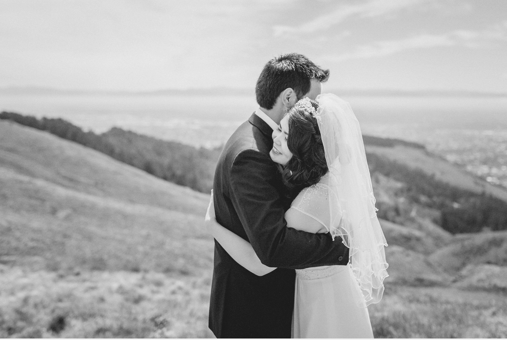 Ben and Yukiko were married at Cashmere Presbyterian Church on a sunny Tuesday afternoon. They chose to keep it all low key and it was pretty special to witness the meeting of two families this way. After their ceremony Ben, Yukiko and I headed up to a lookout point overlooking Lyttleton Harbour and Christchurch City. Low clouds rolling in over the city towards the end of our shoot made for a beautiful backdrop.