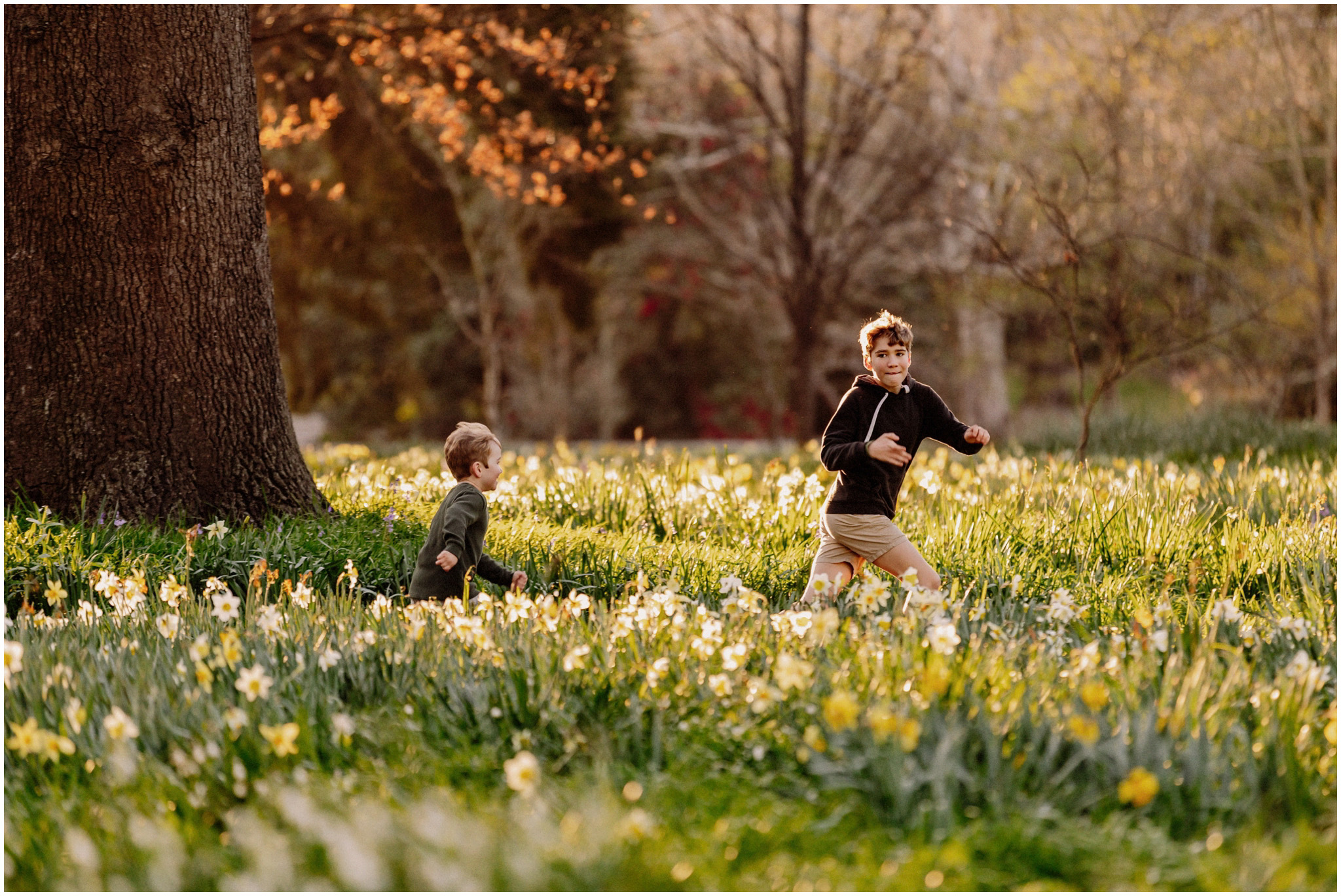 The spring show put on its best dress – daffodils in bright clusters, sweet little snowdrops along the edges, and a haze of bluebells in the shade. We kept to the paths and open spaces, but the kids still had a ball playing tag, darting between patches of colour and circling back for piggybacks. There was plenty of laughter, time for a few candid photos, and those in-between moments I love most – wind in their hair, cheeks pink from running, the proud grin after a fast lap.