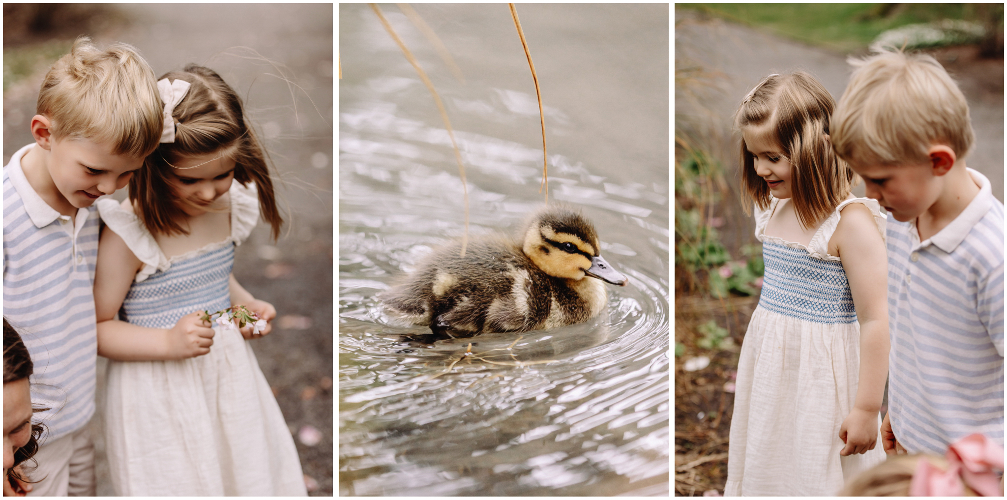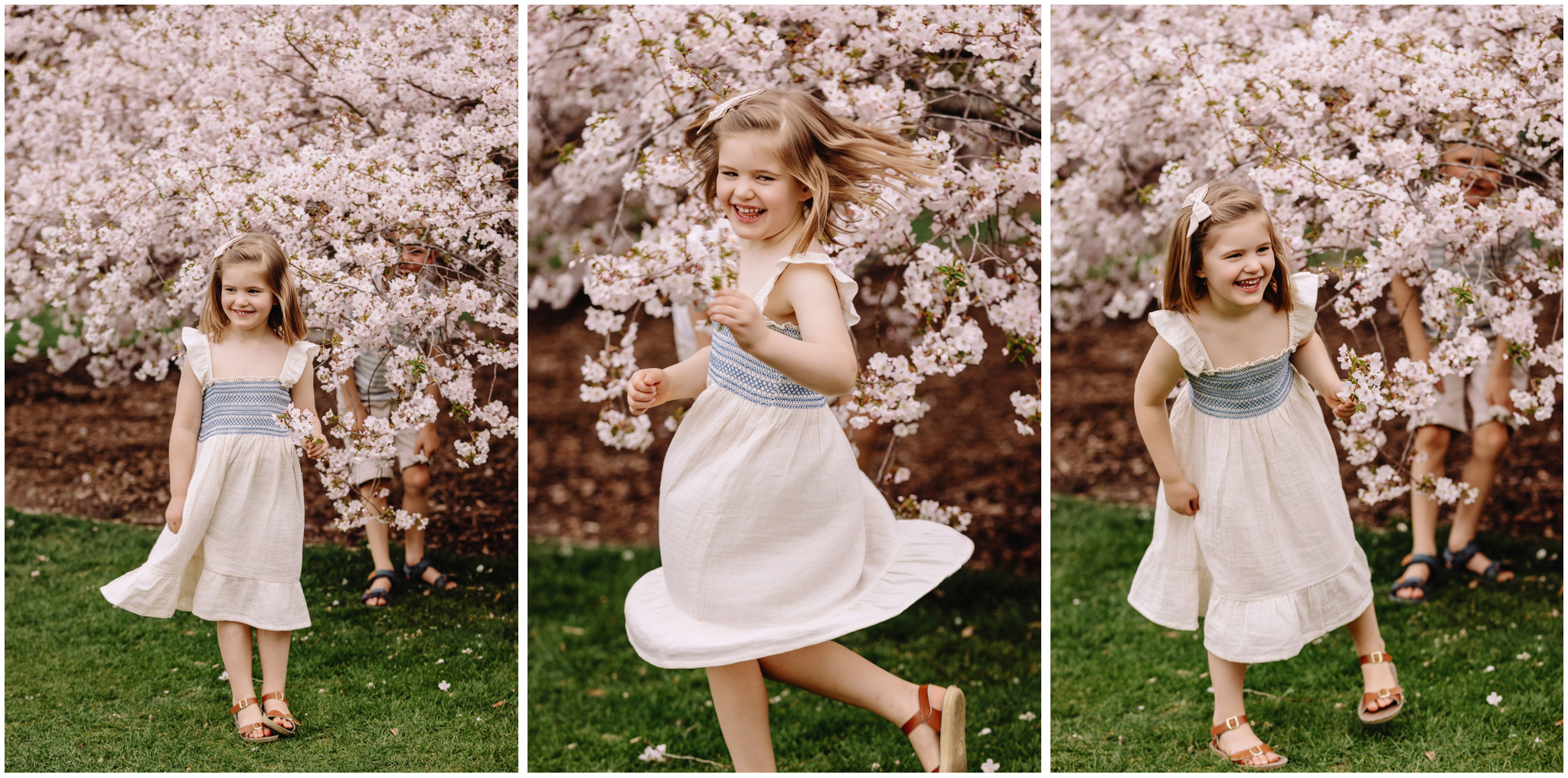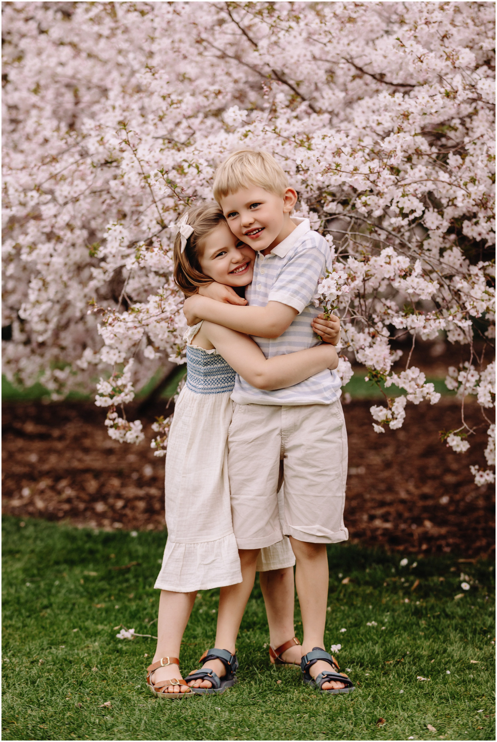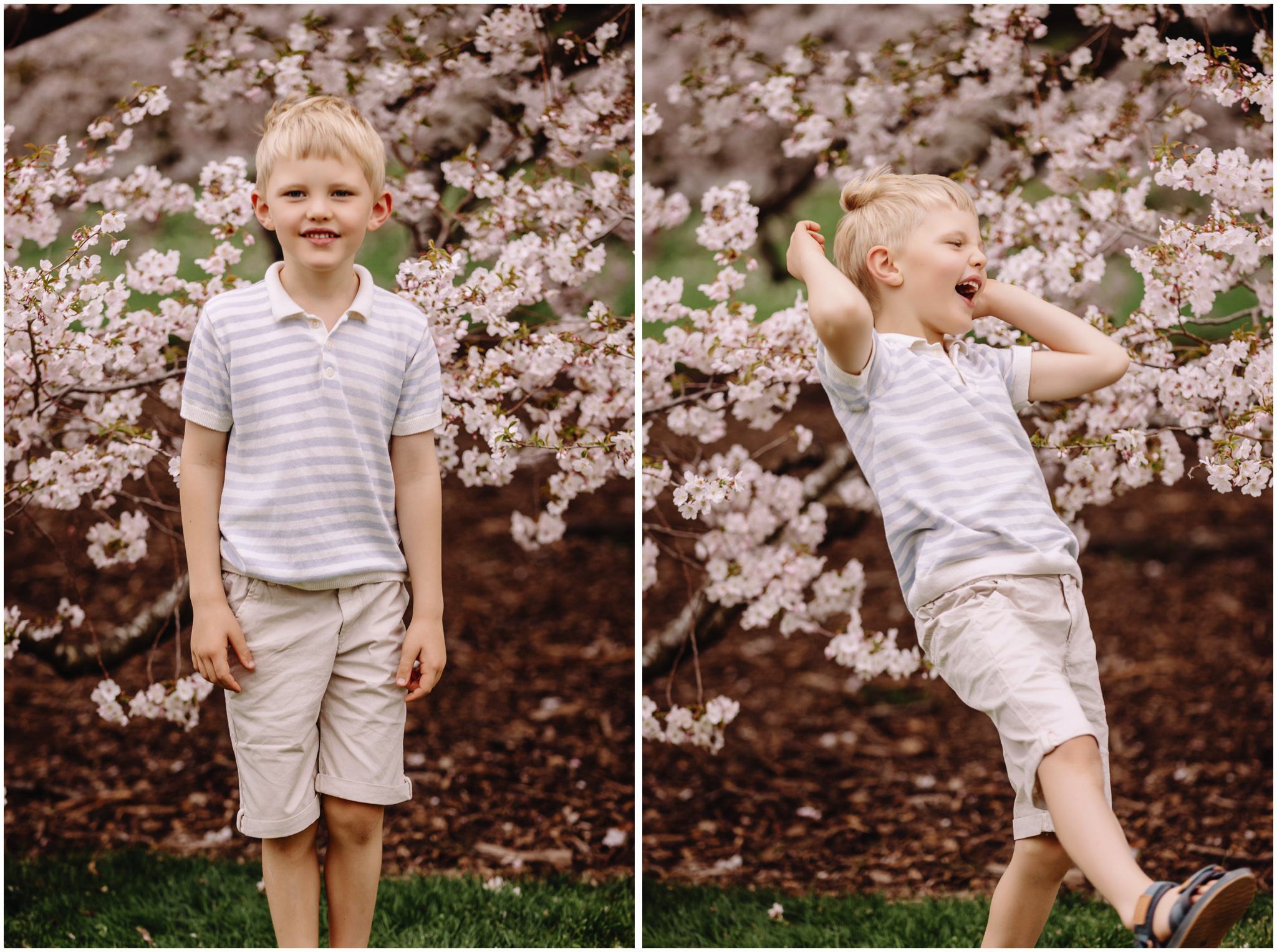 We started at the much-loved old blossom tree right in the heart of the gardens. It is a favourite spot for so many families and for good reason beneath those pink petals, the world feels soft and dreamy. James and Jemimah wasted no time jumping into play, twirling and racing each other. Those natural, joy-filled moments are always the images that really shine.