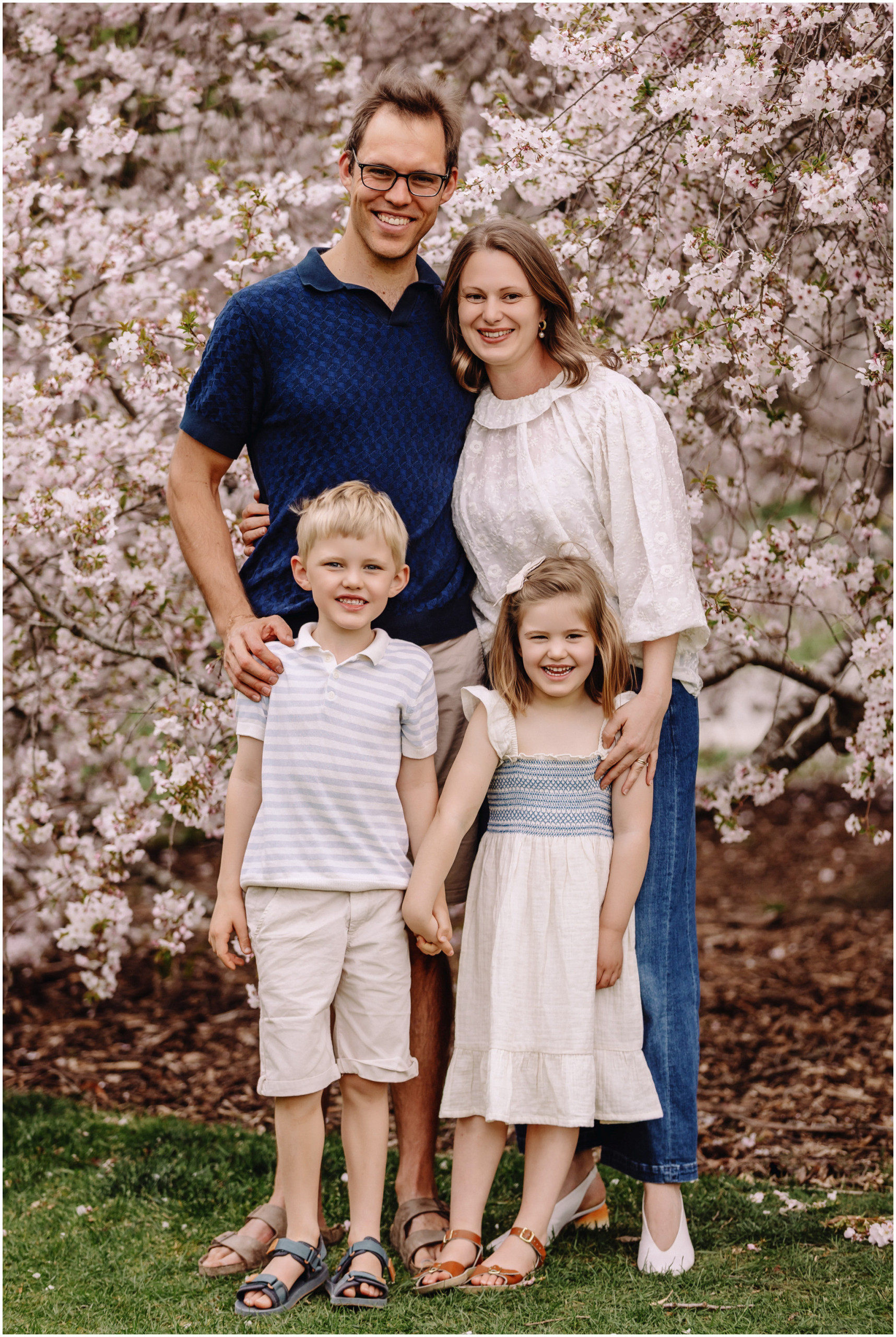 Spring in Christchurch has its own kind of magic. The Botanic Gardens burst into colour, the air warms up, and everything feels bright and hopeful again. It is one of my favourite times of year to photograph families, so I was thrilled to meet up with Tim, Katie, and their two children, James and Jemimah, for a relaxed blossom session.