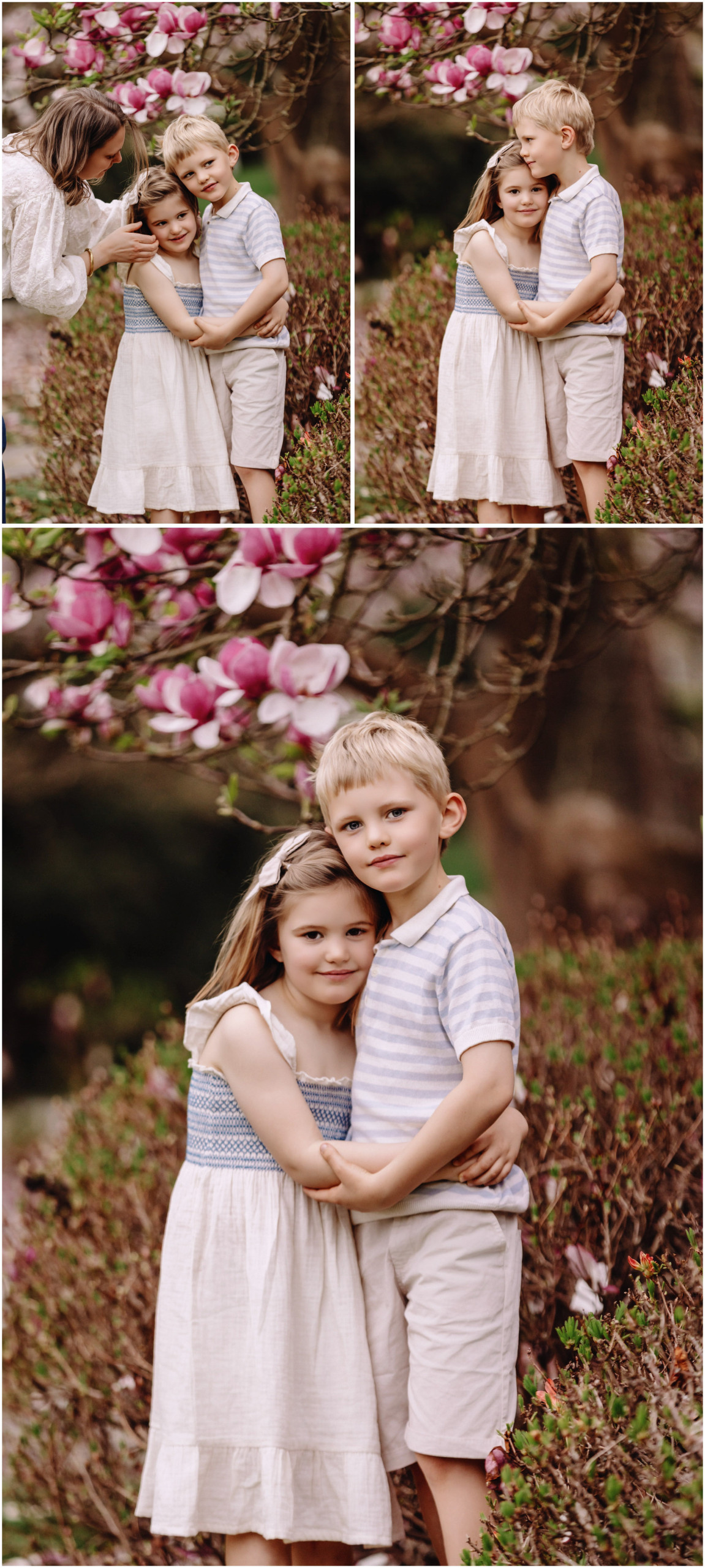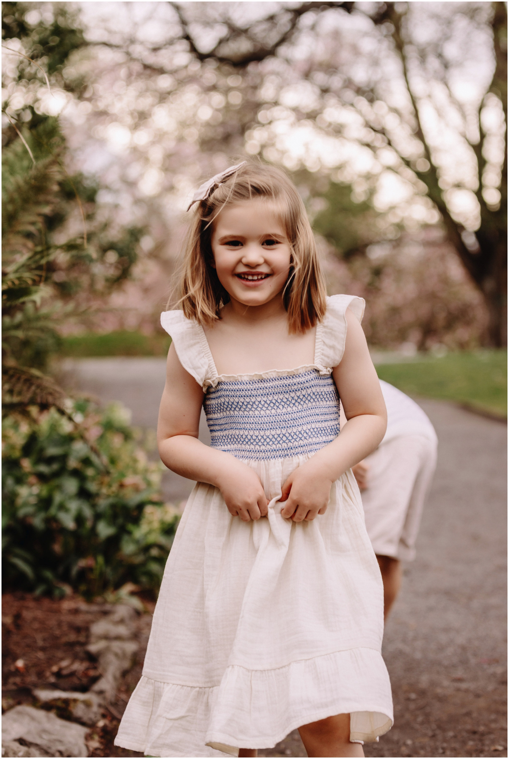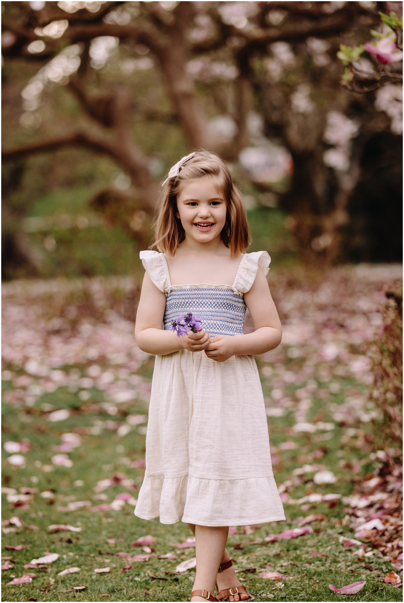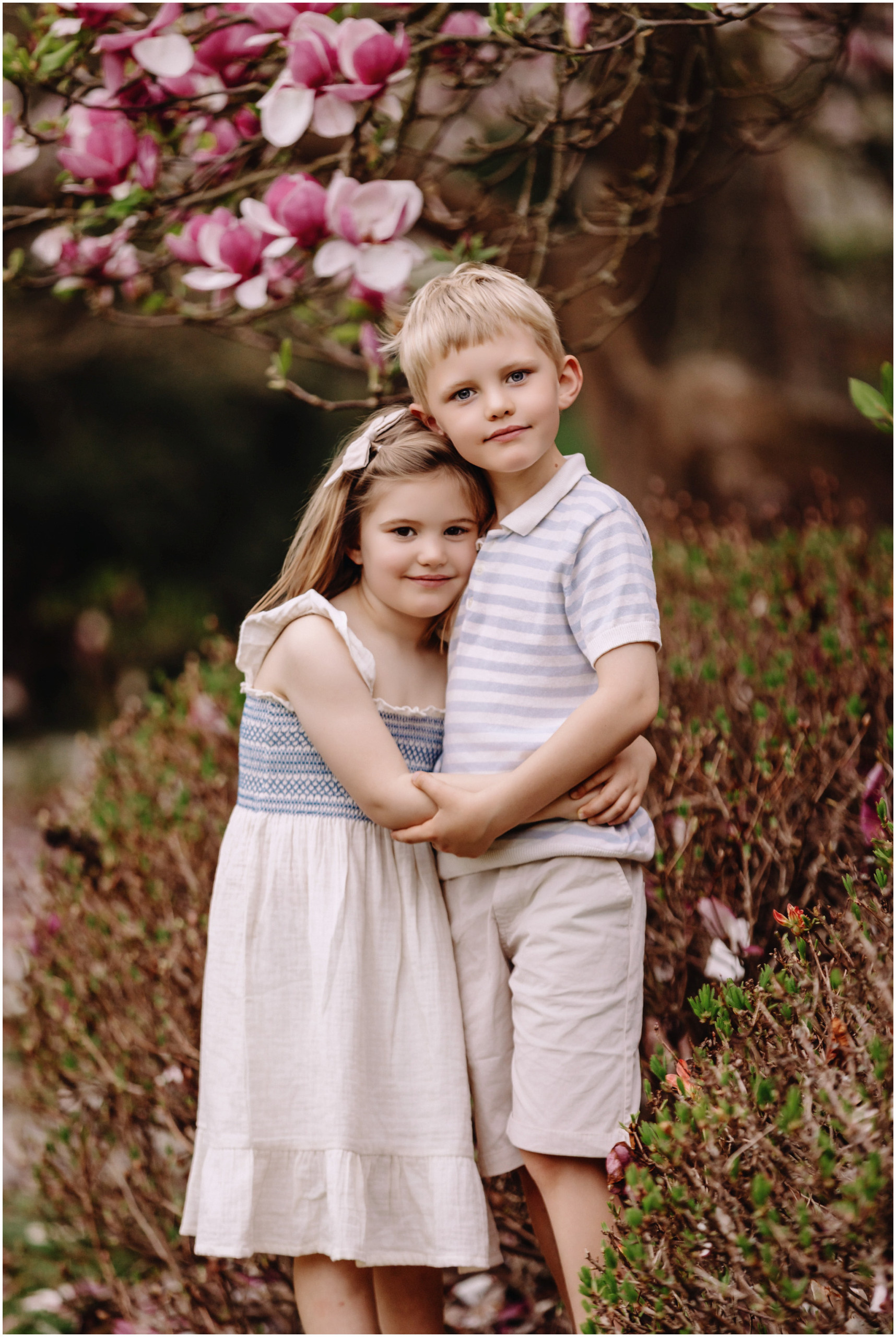 Keeping things fun is a big part of my approach to family photos. Kids are happiest when they can move and explore, so there was plenty of laughing, running, and those cheeky little looks we know so well. We wandered through the magnolia gardens next, where the colours were showing off perfectly, and stopped for a mix of cosy portraits and spontaneous silliness.